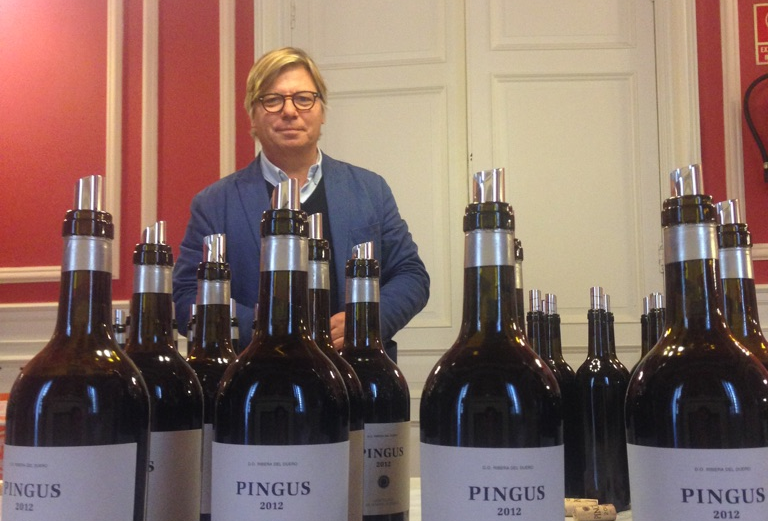 Peter Sisseck –ojalá nunca pierda ese don- habla en castellano como los niños. La retórica no existe: nada se esconde detrás de las palabras, todo se entiende a la primera, ciertos toques de humor. Nos contó su llegada a la Ribera en 1990 para hacerse cargo de los vinos de Hacienda Monasterio, donde continúa ejerciendo como enólogo. La puesta en marcha de su proyecto personal –Pingus- en 1995, con cuatro hectáreas en el municipio de La Horra. El drama –y leyenda de un vino nonato- que supuso el naufragio del barco que transportaba las primeras 1.000 cajas de la nueva marca hacia los EE.UU. El alumbramiento de los hermanos del vino más caro de España, primero el Flor de Pingus, unos años más tarde el PSI…
