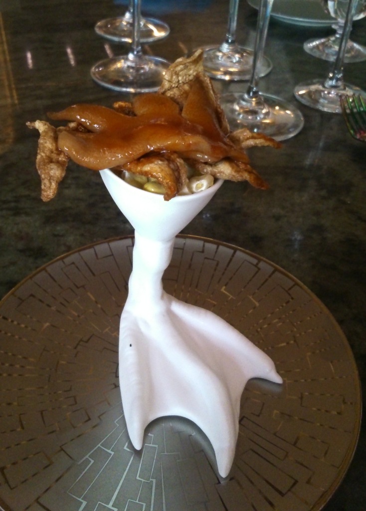 DSC_0814 Publicado el 19/07/2016 en 734 × 1024 Cresta de gallo en texturas y salsa picante, uno de los platos del almuerzo. / B